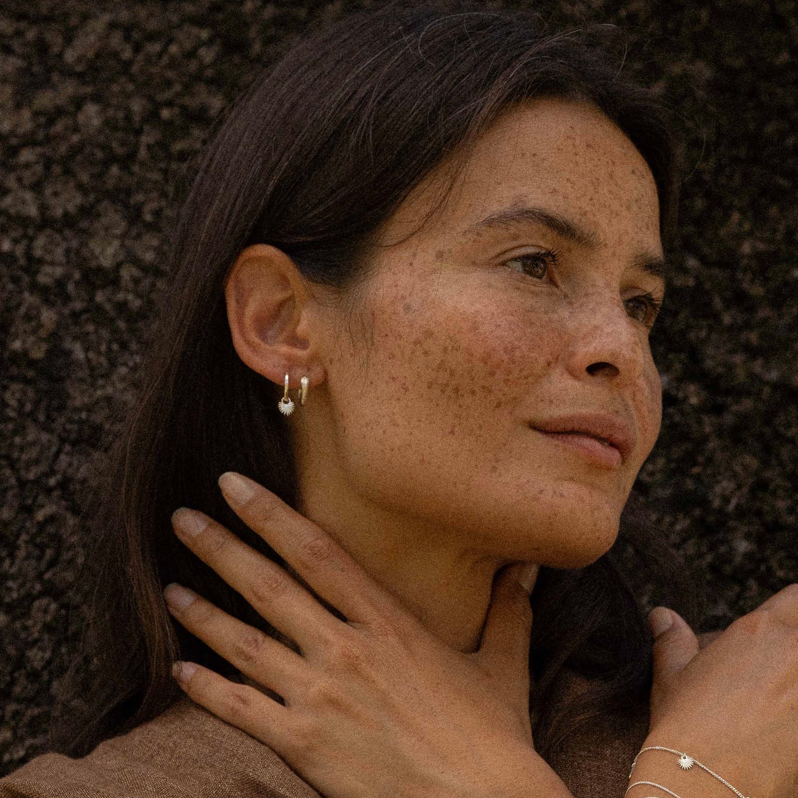 “Rachel has the perfect pair of mini gold hoops that resemble a burst of sunshine.”