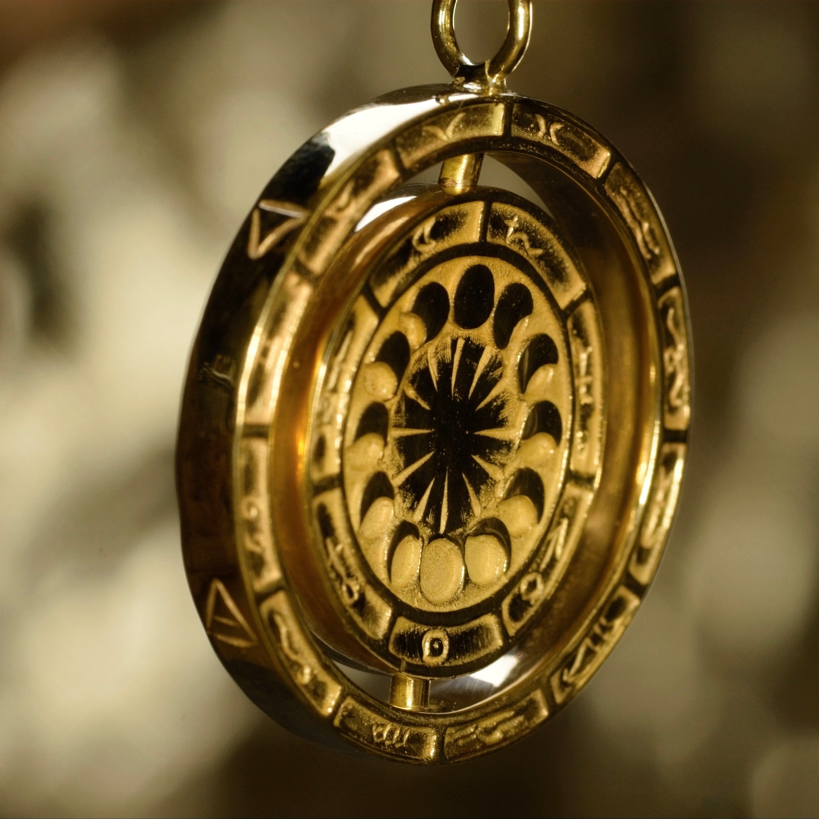 “Every piece is meticulously crafted, with hand engraved details engraved in London, featuring celestial symbols and alchemical motifs that were inspired by the ancient alchemical copper plate engravings”