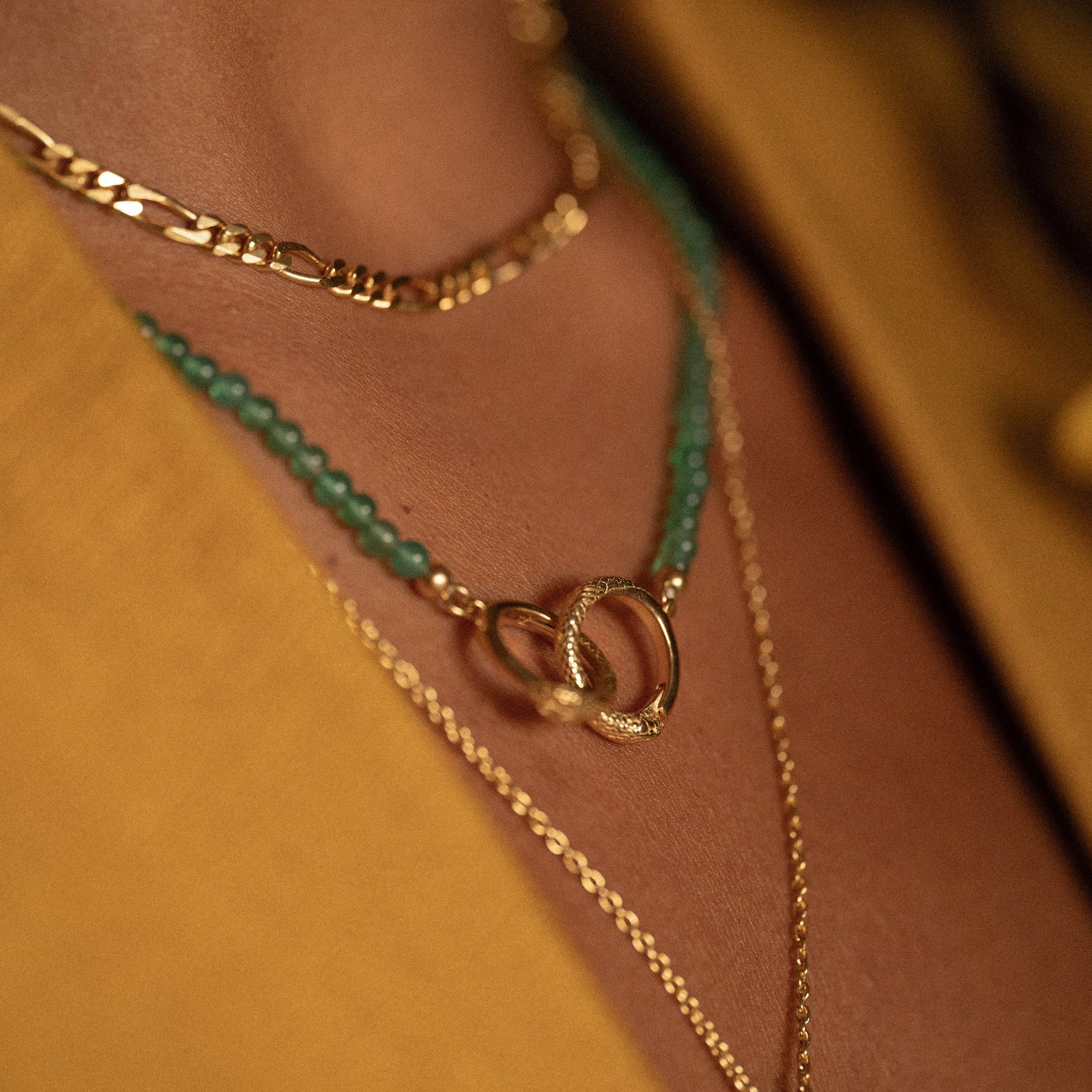 The Ouroboros Green Onyx, Pearl and Chain necklaces are perfect for layering or simply worn as a stand alone piece. Choose your length from choker style 16” to the longer 20” which gives multiple options for layering.