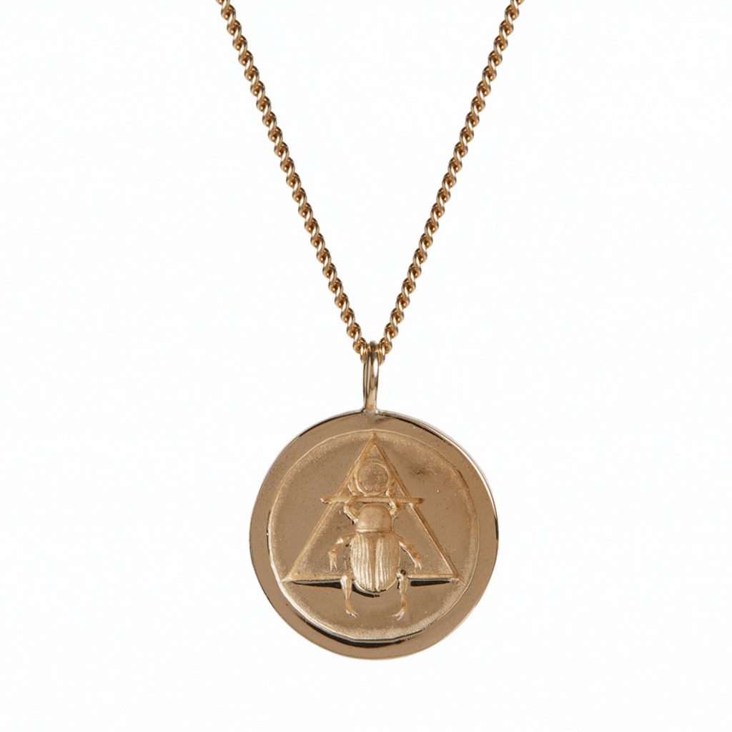This gold necklace with pendant is for men and for women. The scarab pendant is handmade in London for adventures everywhere. Burn what no longer serves you. Embrace the rising sun!