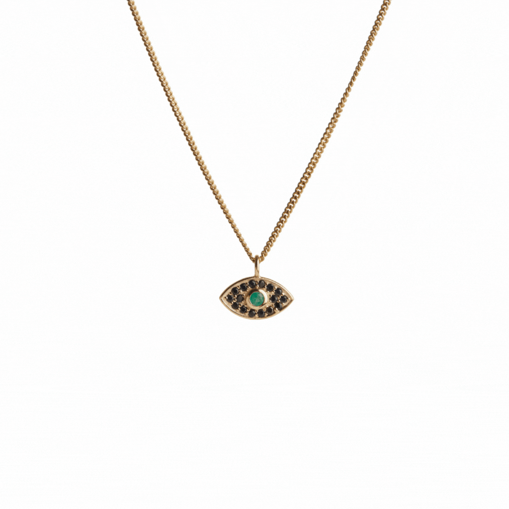 Crafted in solid gold, the eye-shaped pendant of the Rays of Light Mini Necklace carries profound symbolism as a potent protective emblem, passed down through countless generations, transcending the boundaries of time and culture. The practice of wearing evil eye jewellery to ward off the evil eye (the glare of anger, jealousy and hatred) dates back thousands of years – to Plato and classical Greek antiquity. Wear Rays of Light celestial jewellery to feel protected and part of something bigger than yourself. Metal: Choose between Certified Recycled 9ct or 18ct Yellow Gold. Stones: Choose between an Emerald with Black Sapphires, or a White Diamond with Black Diamonds. Chain Length: 45cm Pendant: 10mm x 5.9mm Our team is here to help with any of your jewellery queries.