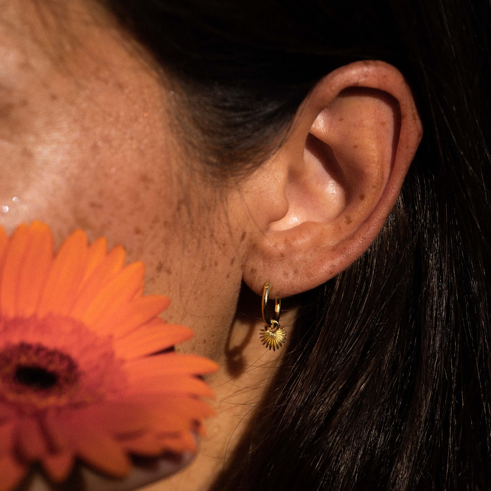 “Rachel has the perfect pair of mini gold hoops that resemble a burst of sunshine.” Vogue