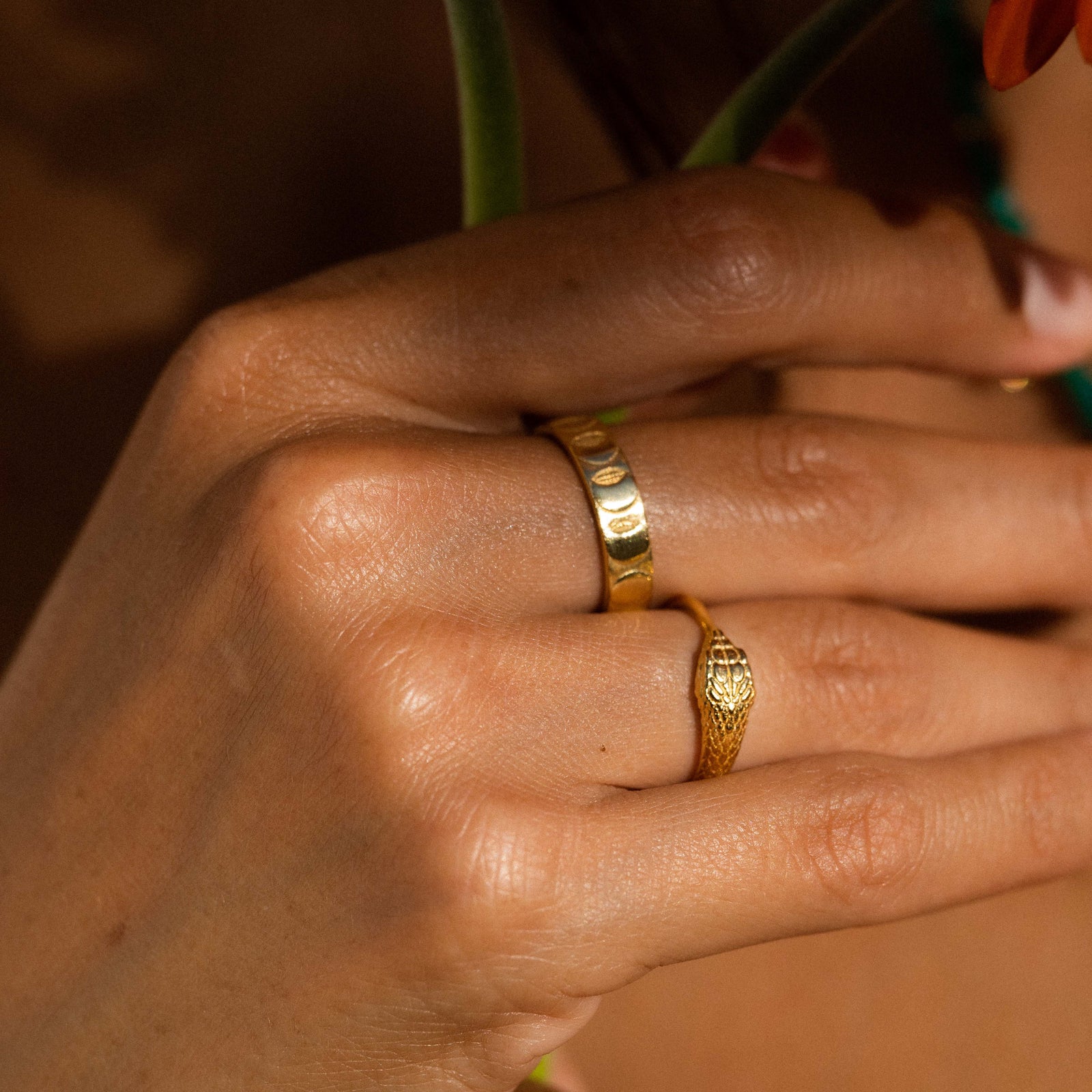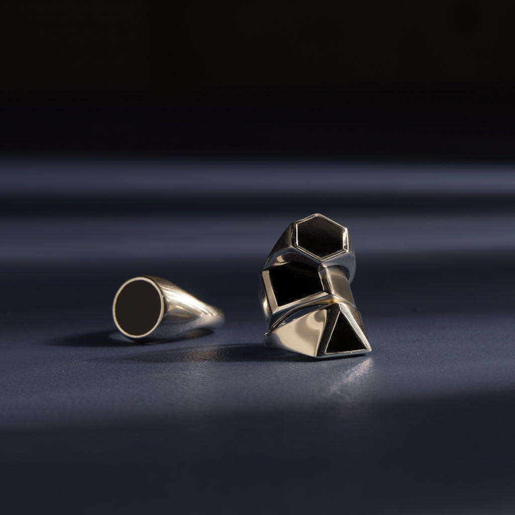 At the heart of our collections are powerful motifs that transcend time and culture. A few of our most popular designs feature symbols such as, the Ouroboros, which is a symbol of eternity and renewal, it inspires designs that speak to the infinite cycles of life. The eyes in our Rays of Light pieces are a powerful symbol, they represent clarity and protection. The Tria Prima—sulfur, mercury, and salt—harnesses alchemical wisdom, offering a nod to transformation and balance. The ancient symbol of Ishtar, goddess of love and war, inspires pieces imbued with strength and femininity, while the four elements—earth, water, air, and fire—infuse our designs with the essence of nature’s core forces.